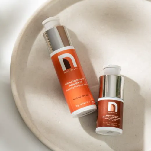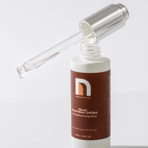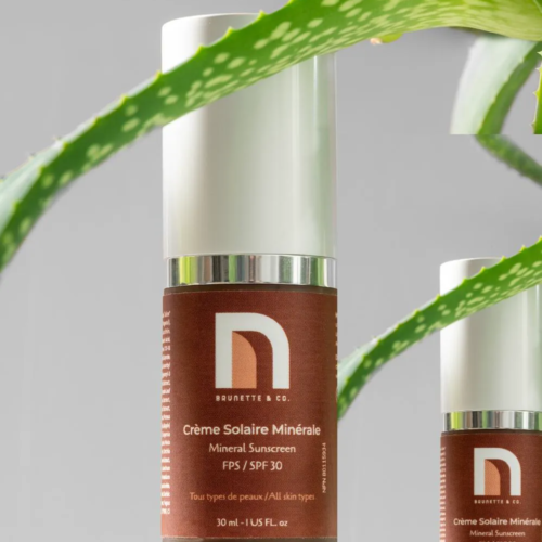 “Conseil de Brunette” = Pour une protection optimale et un fini invisible, attendre que le produit précédent pénètre avant d’appliquer la crème solaire