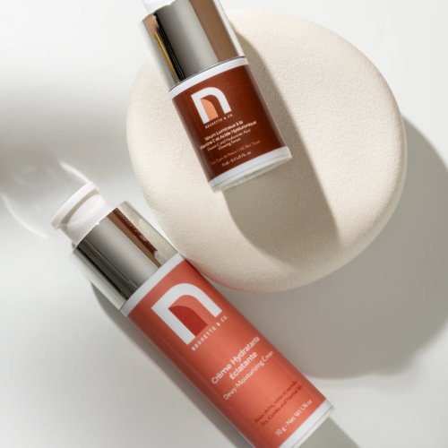 “Conseil de Brunette” = Pour une protection optimale et un fini invisible, attendre que le produit précédent pénètre avant d’appliquer la crème solaire